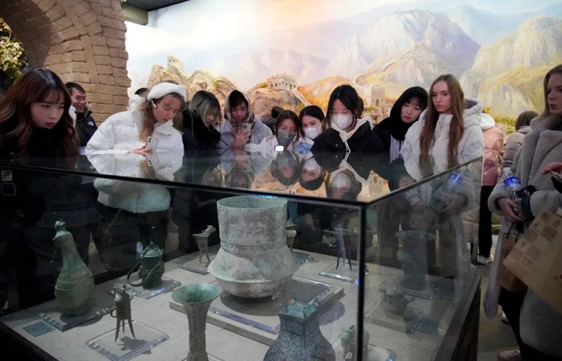 北京語言大學(xué)國際中文學(xué)院領(lǐng)導(dǎo)和老師,以及來自俄羅斯、塞爾維亞、韓國、泰國等國家和地區(qū)的170多名海外留學(xué)生,先后參觀了酒博物館、地下酒窖和黨建天地,在感受板城燒鍋酒傳承三百余年的老五甑釀造工藝的同時(shí),共同聆聽、探尋板城酒業(yè)背后的深厚歷史與文化底蘊(yùn)。在深入了解企業(yè)脈絡(luò)、品牌文化后,對(duì)冀酒文化的認(rèn)識(shí)更加深刻。