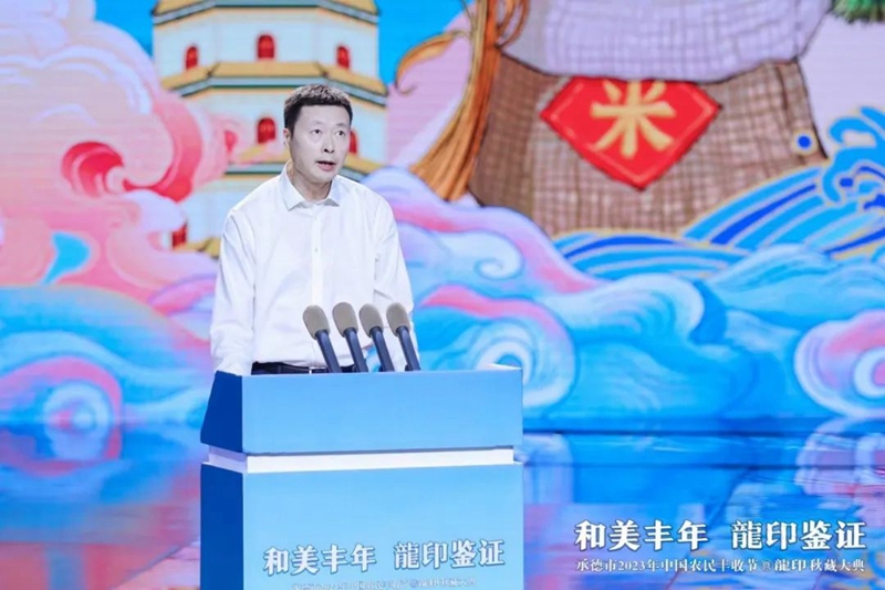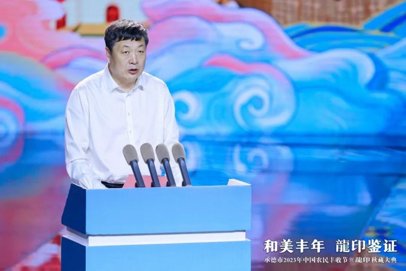 整場(chǎng)慶典以記錄承德人民美好生活、美景美食、農(nóng)業(yè)碩果的視頻《承德十二時(shí)辰》拉開(kāi)帷幕。承德市人民政府副市長(zhǎng)崔萬(wàn)峰率先上臺(tái)致辭,并對(duì)承德市2023年中國(guó)農(nóng)民豐收節(jié)暨龍印秋藏大典的召開(kāi)表示熱烈祝賀。