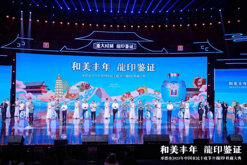 禮贊豐收年,共品龍印酒。9月23日,由承德市人民政府、河北廣播電視臺(tái)(集團(tuán))聯(lián)合主辦;由承德縣人民政府、承德市農(nóng)業(yè)農(nóng)村局、承德市體育局協(xié)辦;由承德縣農(nóng)業(yè)農(nóng)村局、河北板城酒業(yè)、河北廣電廣告有限責(zé)任公司承辦的承德市2023年中國(guó)農(nóng)民豐收節(jié)暨龍印秋藏大典在承德市奧體中心圓滿(mǎn)落下帷幕。板城酒業(yè)駕起卓越追求的時(shí)代巨輪,乘歷史文脈之槳,掌匠心傳承之舵,揚(yáng)帆起航,再次譜寫(xiě)龍印“秋藏大典”品牌文化IP的時(shí)代篇章。