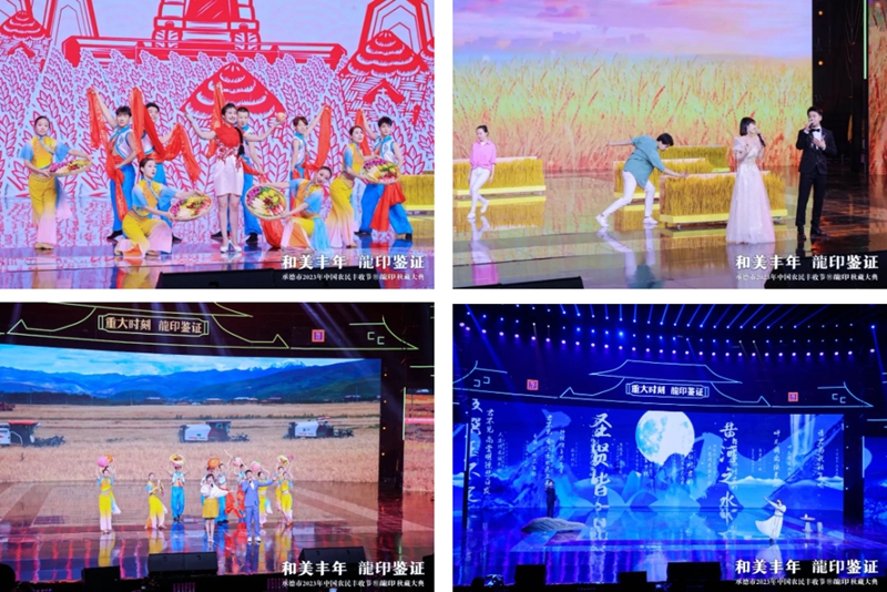 活動(dòng)中,情景劇《歷史上的1717》通過(guò)舞臺(tái)技術(shù)實(shí)現(xiàn)康熙皇帝與趙弘燮跨時(shí)空對(duì)話,再現(xiàn)了“金木水火土,板城燒鍋酒”的傳奇故事,在無(wú)數(shù)板城人心中蕩起層層漣漪;《豐收中國(guó)》、《風(fēng)吹麥浪》、《豐收進(jìn)行曲》等歌曲唱盡了農(nóng)民的喜悅,以及他們砥礪奮進(jìn)的決心。