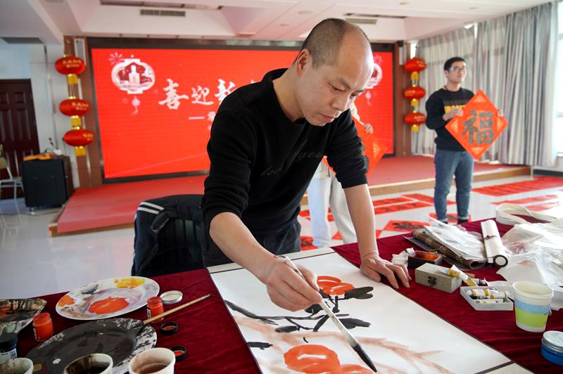 1月22日,承德縣文學(xué)藝術(shù)界聯(lián)合會、承德縣書法協(xié)會來到板城酒業(yè)為“送福進萬家”提前準備“文化禮包”,現(xiàn)場揮毫潑墨,書寫新春祝福。一張張紅彤彤的春聯(lián)象征著喜慶吉祥,傳遞著“喜迎新春,諸事和順”的美好愿望。