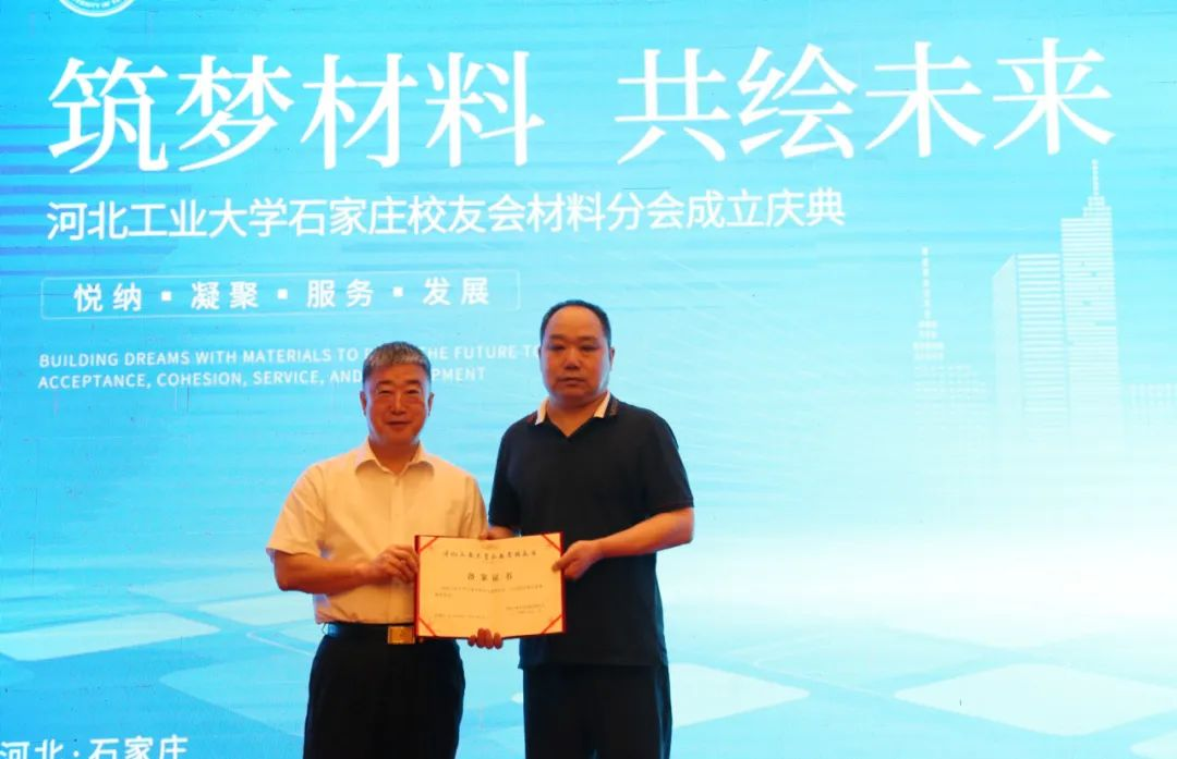 河工大石家莊校友會(huì)韓杏軍會(huì)長為材料分會(huì)會(huì)長唐永忠頒發(fā)備案證書