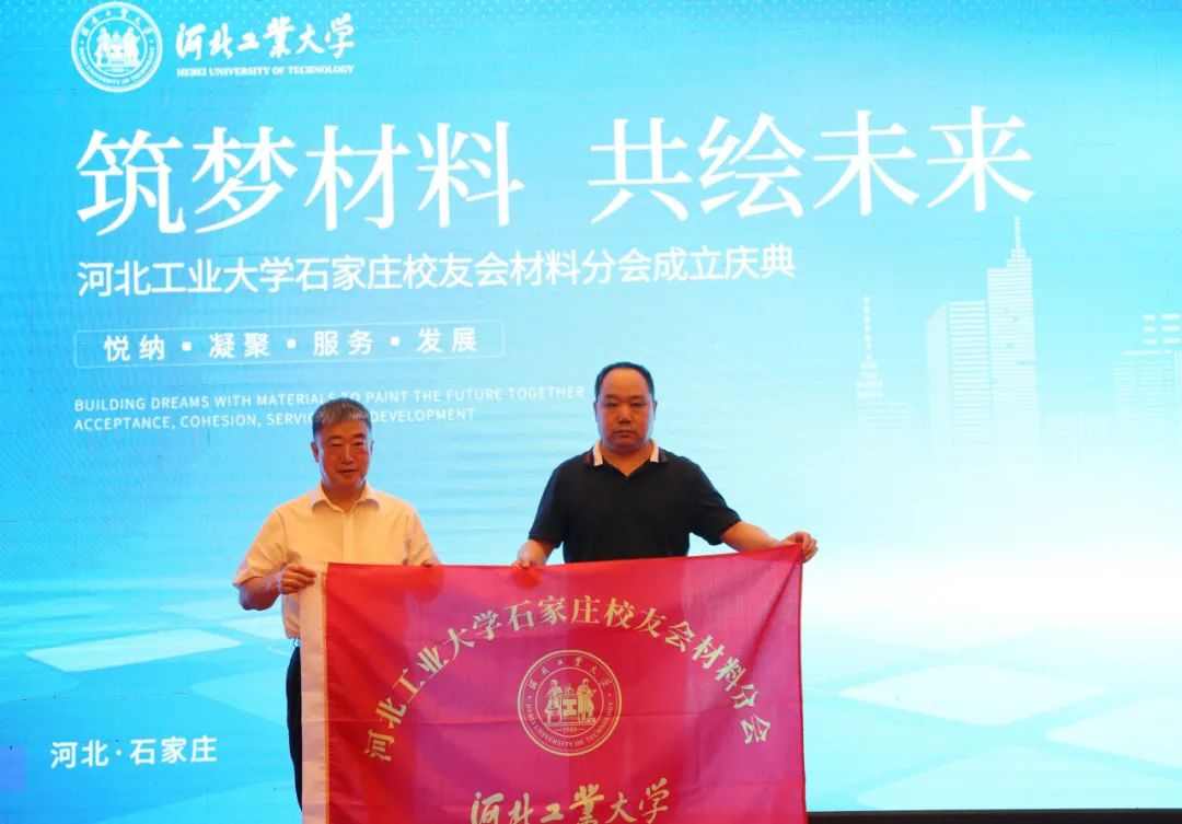 河工大石家莊校友會(huì)韓杏軍會(huì)長為材料分會(huì)會(huì)長唐永忠授旗