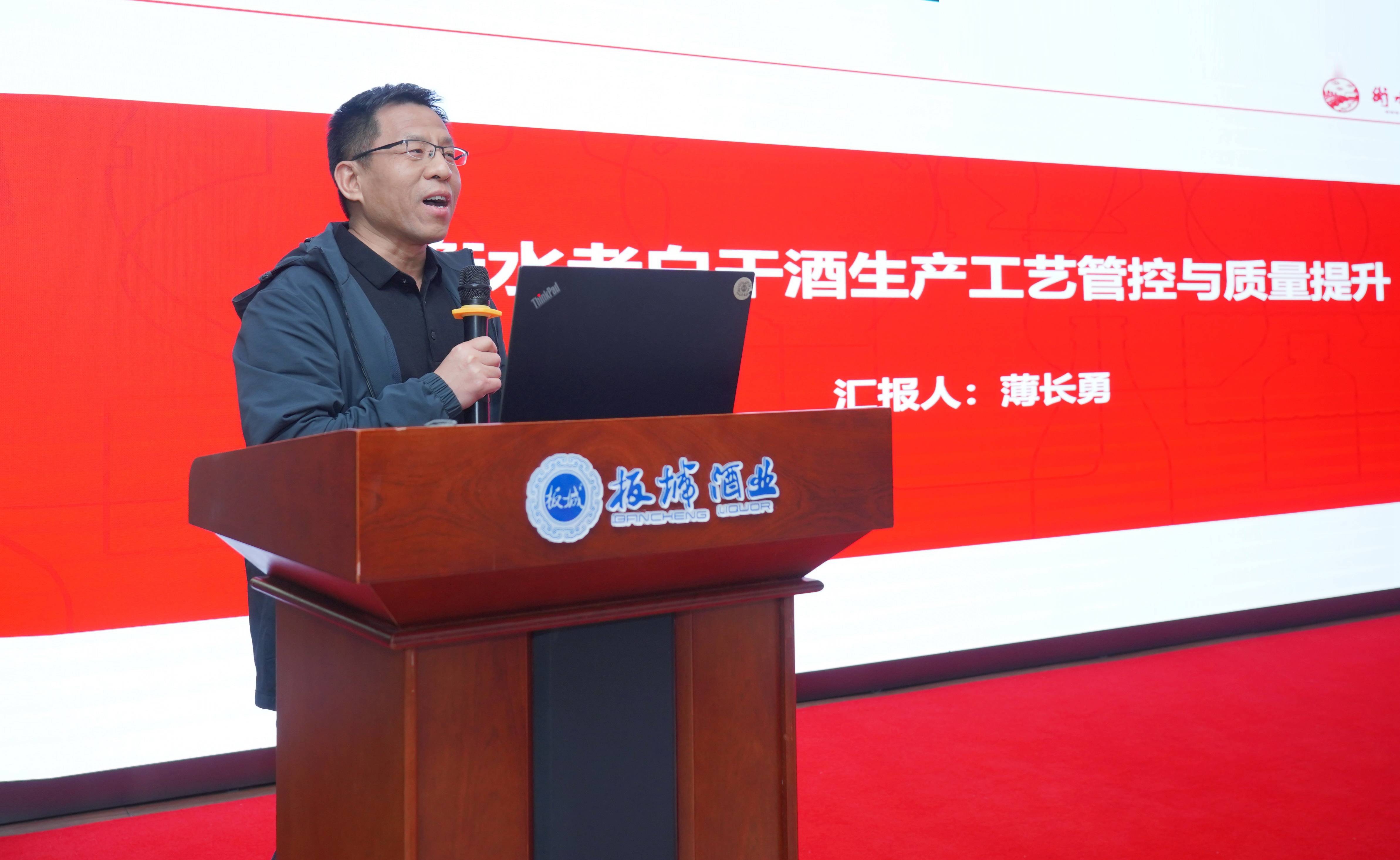 衡水老白干酒業(yè)制酒一車間副主任薄長勇就“生產(chǎn)工藝管控及質(zhì)量提升”進行專題講座。薄長勇副主任結(jié)合自身多年工作經(jīng)驗,分享了衡水老白干釀酒質(zhì)量管控提升的發(fā)展歷程,并分享了標準化工藝管控和精細化質(zhì)量提升的成功經(jīng)驗。