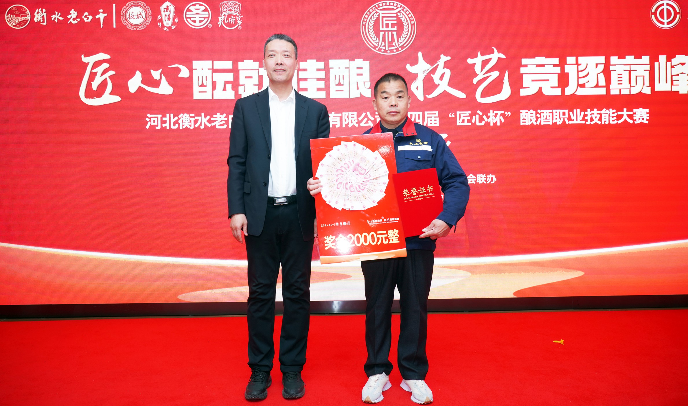 衡水老白干酒業(yè)公司工會(huì)副主席孔衛(wèi)東宣讀本次大賽獲獎(jiǎng)名單,宣布對(duì)獲獎(jiǎng)選手進(jìn)行表彰,大賽中36名優(yōu)秀選手經(jīng)過(guò)激烈角逐,最終產(chǎn)生“釀酒狀元”1名,“杰出工匠”5名,“技術(shù)能手”12名,“優(yōu)秀選手”18名;本次新增設(shè)“匠心傳承獎(jiǎng)”1名。