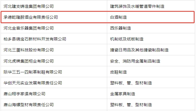 近日,河北省輕工行業(yè)協(xié)會日前發(fā)布了我省2024年度輕工業(yè)50強企業(yè)榜單。三河匯福糧油集團有限公司、君樂寶乳業(yè)集團股份有限公司、今麥郎食品股份有限公司、邯鄲美的制冷設備有限公司、秦皇島金海糧油工業(yè)有限公司、風帆有限責任公司等企業(yè)位居前列,河北板城酒業(yè)(承德乾隆醉酒業(yè)有限責任公司)再次實力入選2024年度河北省輕工業(yè)50強企業(yè)榜單。