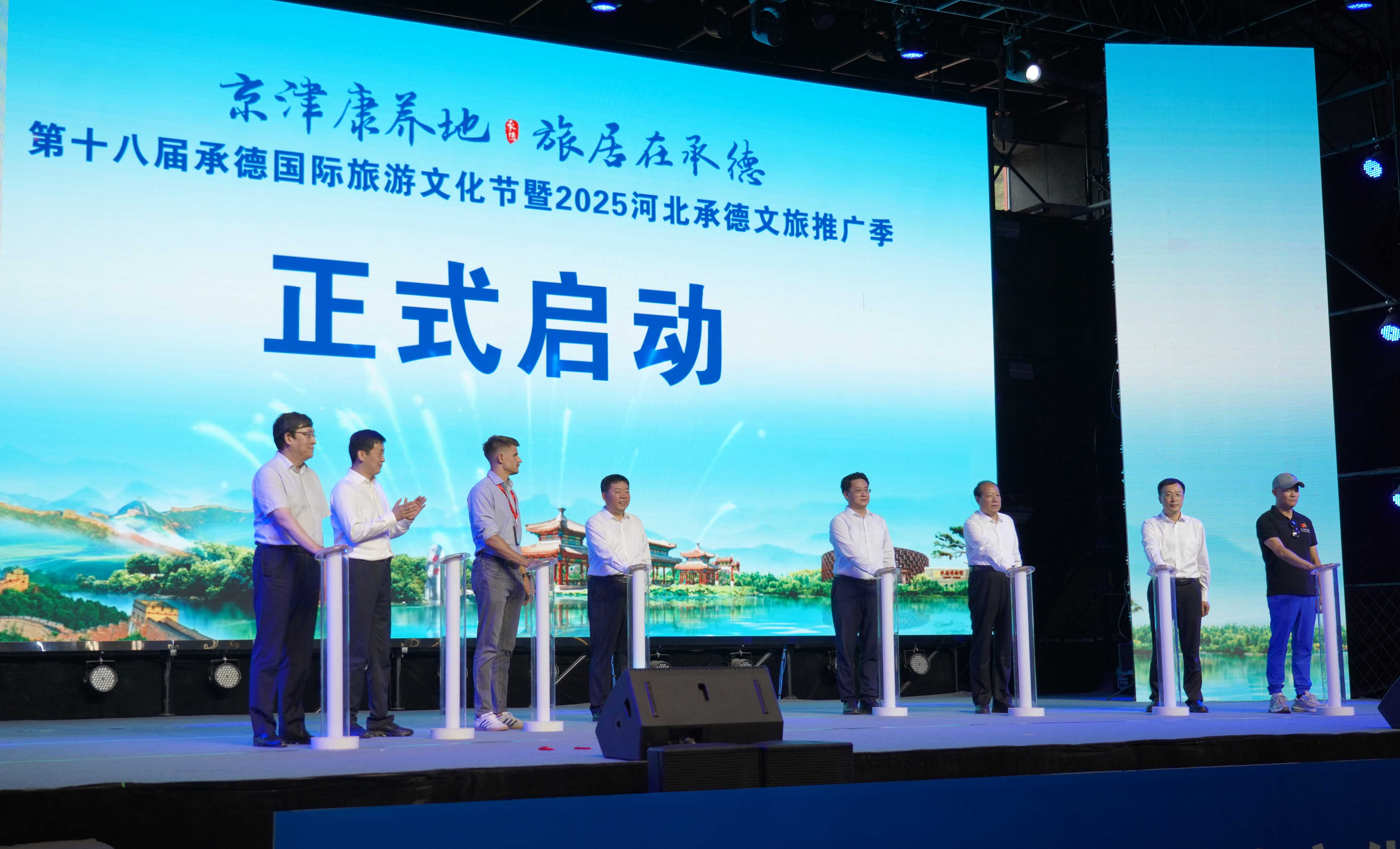在熱烈的氛圍中,與會領(lǐng)導共同按下啟動裝置,標志著第十八屆承德國際旅游文化節(jié)暨2025河北承德文旅推廣季正式啟幕。