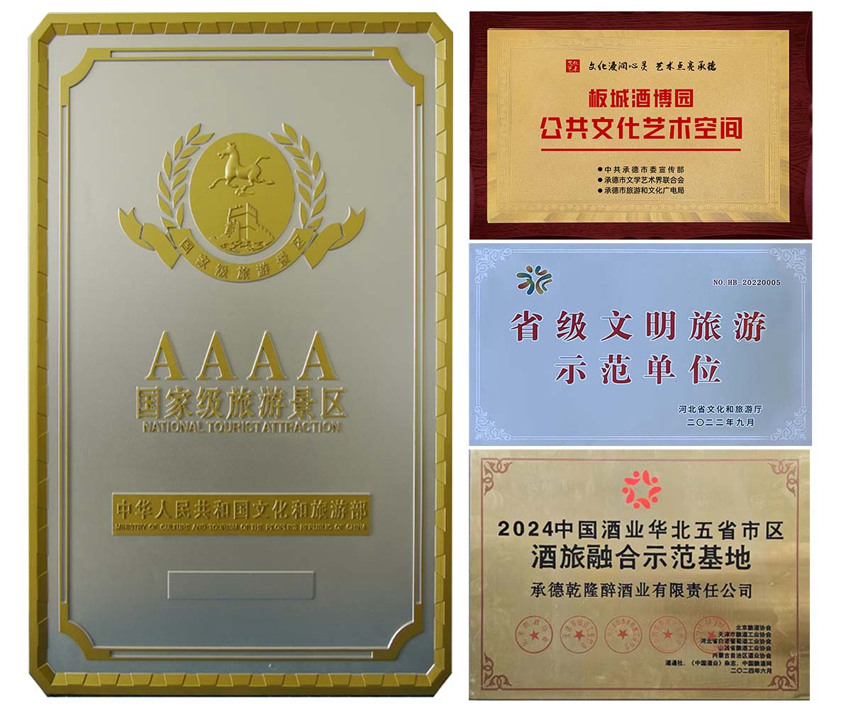 2019年被評選為第四屆承德市旅游產(chǎn)業(yè)發(fā)展大會的重點推介項目,先后榮獲“公共文化藝術(shù)空間”“省級文明旅游示范單位”“2024中國酒業(yè)華北五省市區(qū)·酒旅融合示范基地”等榮譽稱號。