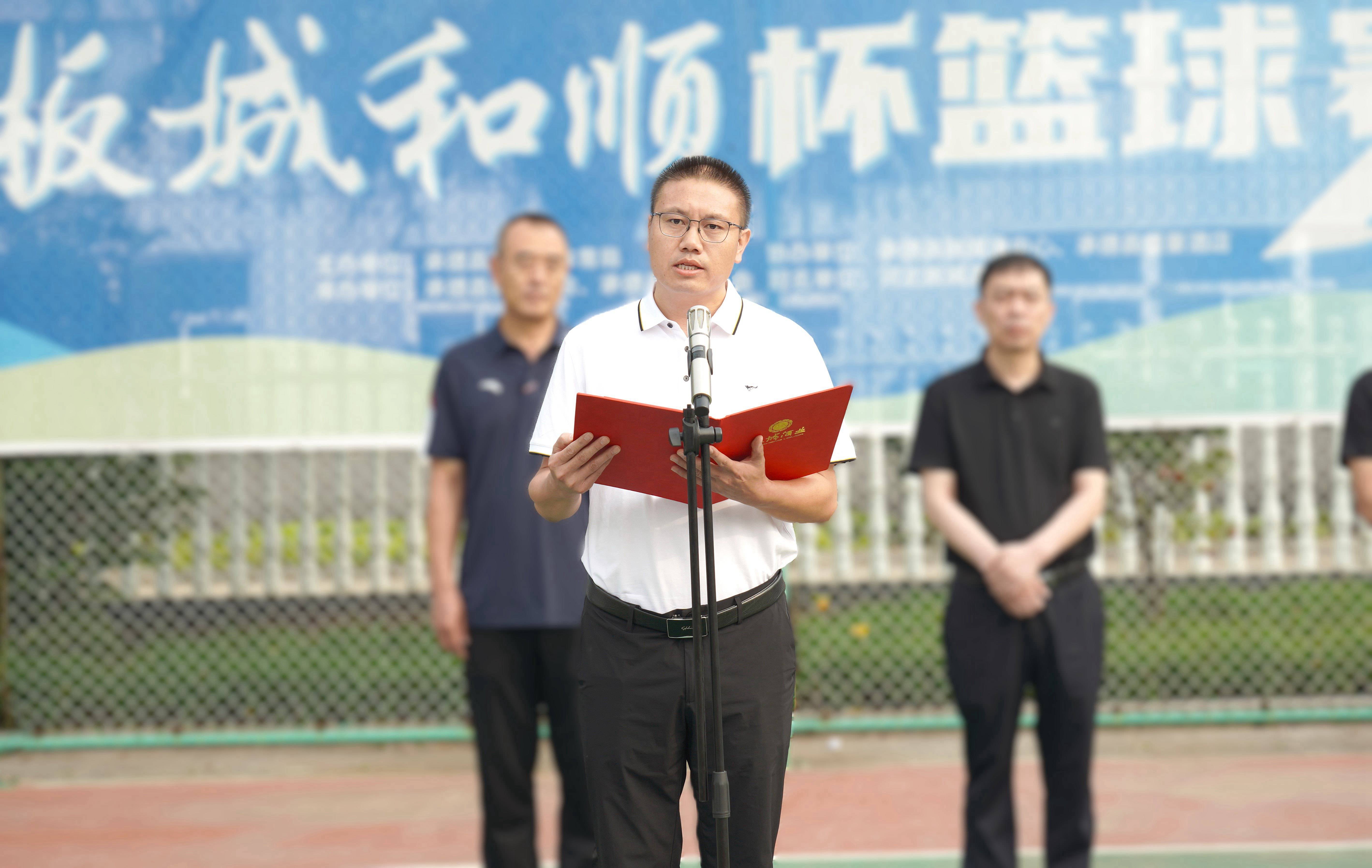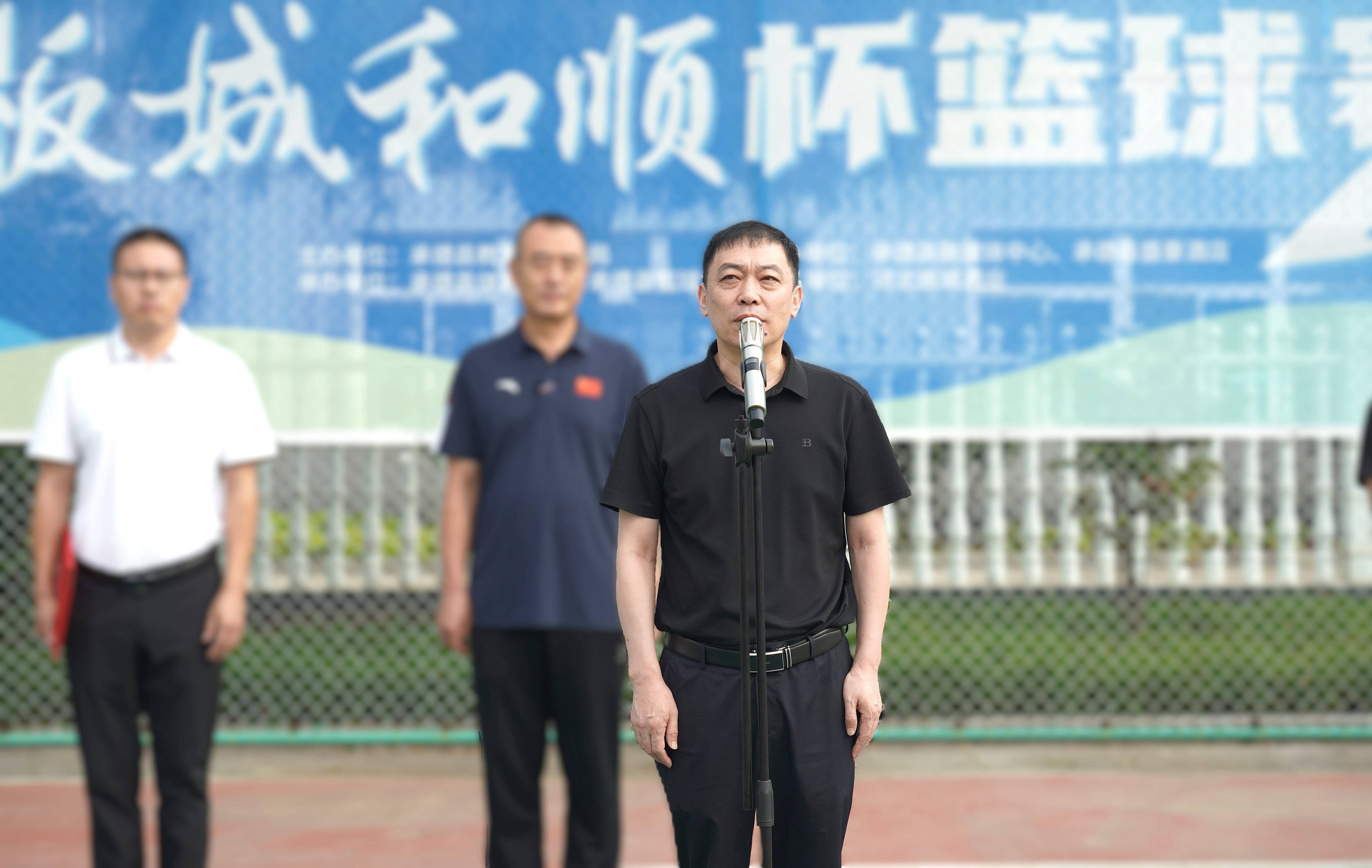 承德縣教育和體育局體育工作指導中心主任朱瑞東發(fā)表致辭,朱主任講到:“縣教體局聯(lián)合板城酒業(yè)持續(xù)舉辦體育賽事活動,連續(xù)舉辦七屆‘板城和順杯’籃球賽事,為承德縣全民健身提供了重要平臺,縣教體局將持續(xù)開展全民健身活動,搭建全民健身平臺,開展形式多樣的體育活動,讓承德縣人民參與多種體育賽事。”